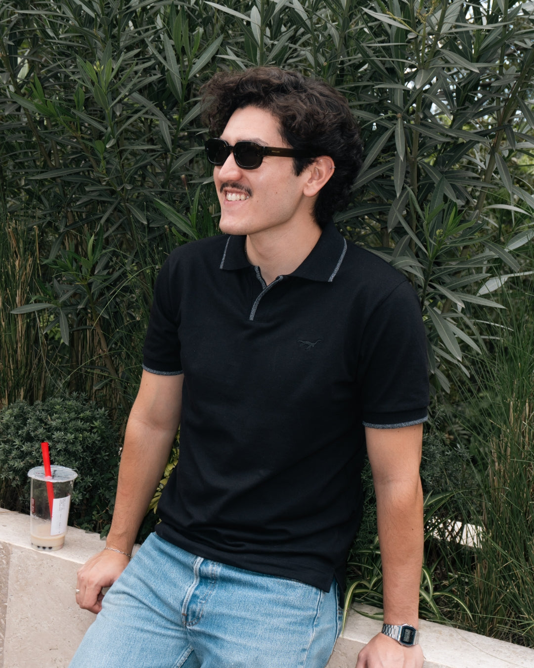 Diseño minimalista, acabados premium. Esta polo sin botones eleva lo esencial con un bordado discreto y detalles en contraste que proyectan elegancia sin esfuerzo.