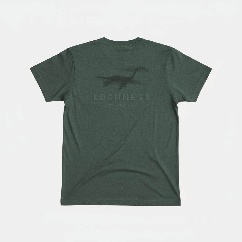 La Camiseta Lochness NESSIE destaca por su diseño gráfico inspirado en la leyenda del Lago Ness. Con un estampado pequeño al frente y un gráfico único en la espalda, esta camiseta mezcla lo minimalista con lo enigmático.